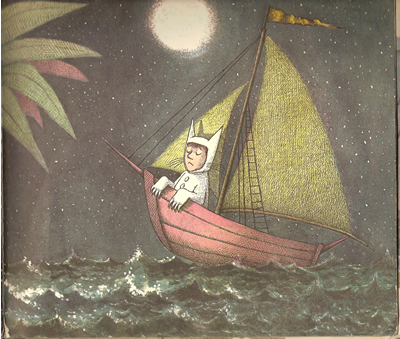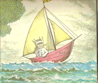 * Seventeenth picture: Max sails home, looking a little sad -